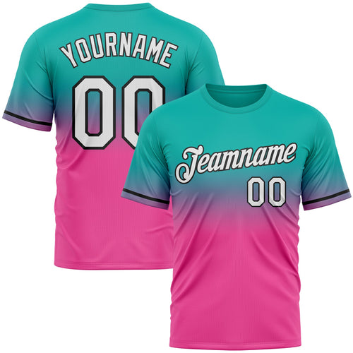 Custom Aqua Pink-Black Fade Fashion Performance T-Shirt